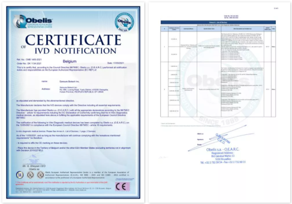 圣湘生物本次获得CE认证的产品“新型冠状病毒(SARS-CoV-2)5种突变核酸检测试剂盒(荧光PCR法)”,通过多重荧光PCR方法,一次测试可同步完成对新冠病毒5种突变(N501Y、HV69-70del、K417N、P681H和E484K)的快速鉴别检测,实现变异型病毒株(B.1.1.7、B.1.351、P.1)的快速鉴别诊断。同时,采用新冠保守序列N基因作为监控内标,极大提升样本检测结果的准确性。该款试剂盒将有助于新冠病毒变异株的快速鉴定和监测。