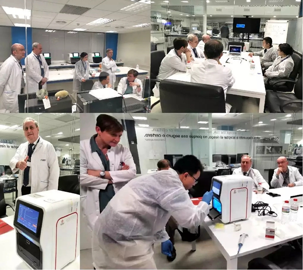 活动期间第一站,圣湘生物携带iPonatic便携式移动分子诊断系统访问了欧洲最大规模的第三方实验室SYNLAB及西班牙本土最大的第三方实验室Echevarne,并向对方实验室负责人演示了在iPonatic上进行HPV检测实验。SYNLAB和Echevarne实验室人员对iPonatic能够实现样本进、结果出,15分钟左右就能获得准确的检测结果,将传统的“小时级”检测转变为“分钟级”检测,以及能够减少严苛的实验室环境搭建费用的支出表达了肯定,均表示对于基层医院和实验室而言,无疑是最理想的检测设备之一,真正将分子诊断应用领域实现全场景化。两家实验室对圣湘生物提出的“全自动化分子实验室解决方案”以及“PCR分子实验室合作共建方案”表现出了浓厚兴趣。